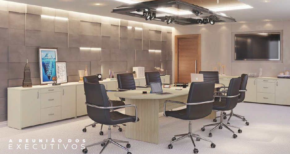 Mesa Reunião Oval Diamante Pé Painel e Credenza