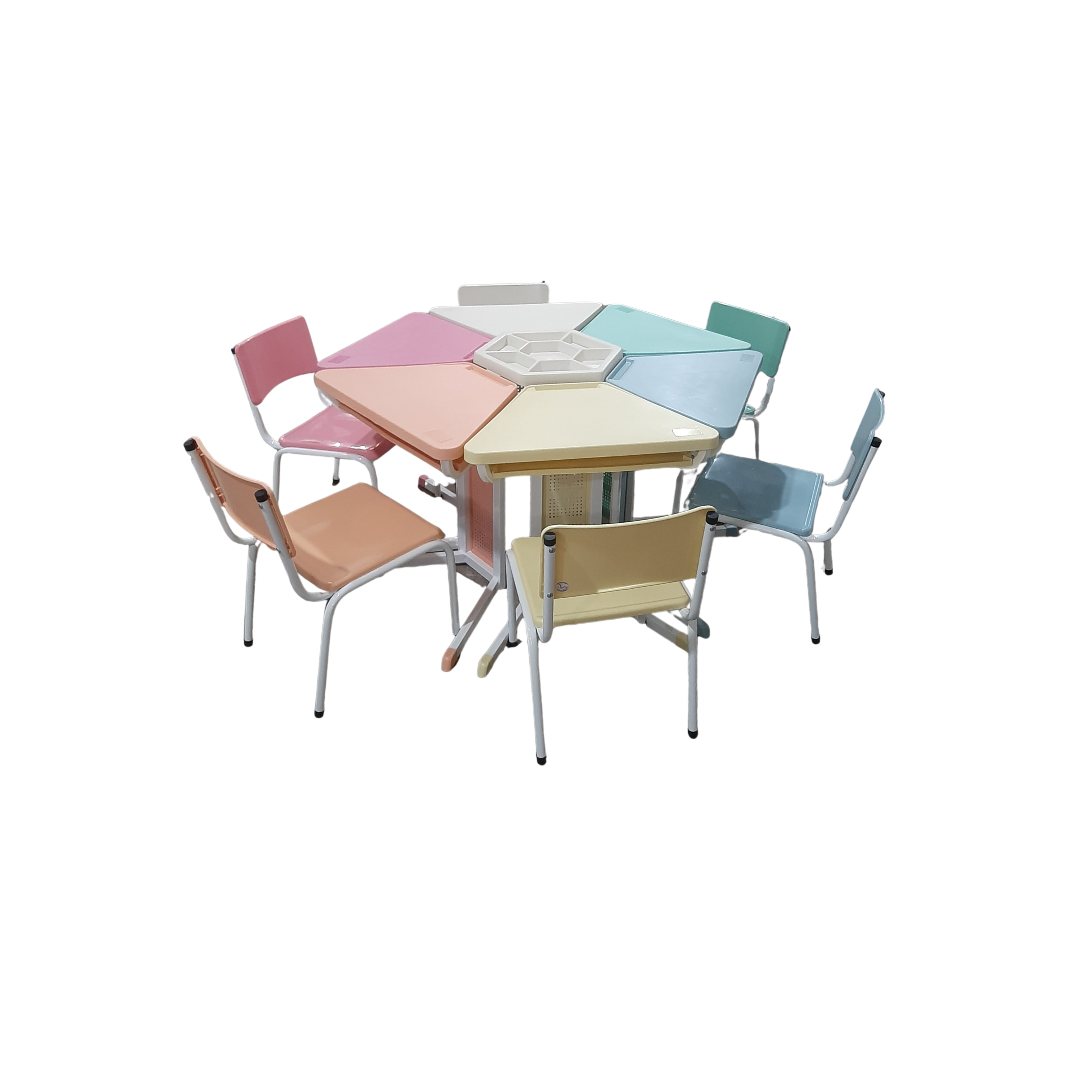 Conjunto Escolar Coletivo Trapézio Modelo Real, uma solução moderna e ergonômica para ambientes educacionais. Com design inovador, oferece conforto e praticidade, promovendo uma experiência de aprendizado envolvente e colaborativa.