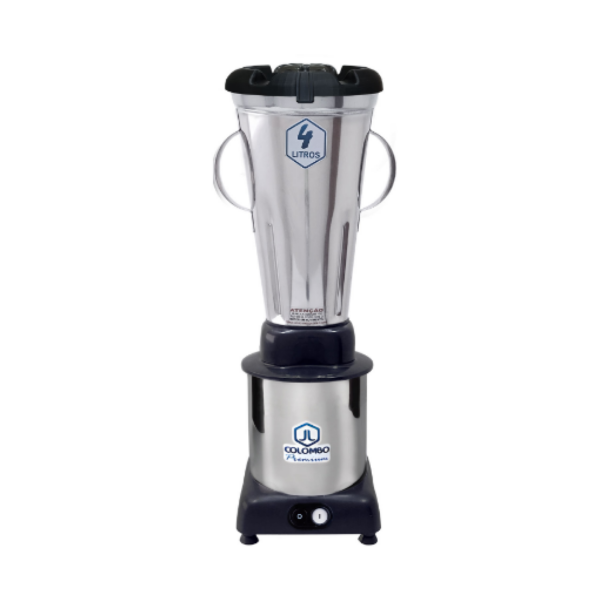 Liquidificador de baixa rotação indicado para processar grandes volumes de alimentos de forma uniforme e segura, ideal para sopas, massas, molhos, cremes e preparações densas que exigem trituração controlada tampa em polipropileno com dosador, copo em aço inox 304 monobloco polido, corpo em aço inox polido, motor 1/2 CV, rotação 3.500 rpm, frequência 60 Hz, isolamento Classe F, bivolt 127V/220V com chave seletora, potência 800W/1.000W, certificado INMETRO Portaria 371.