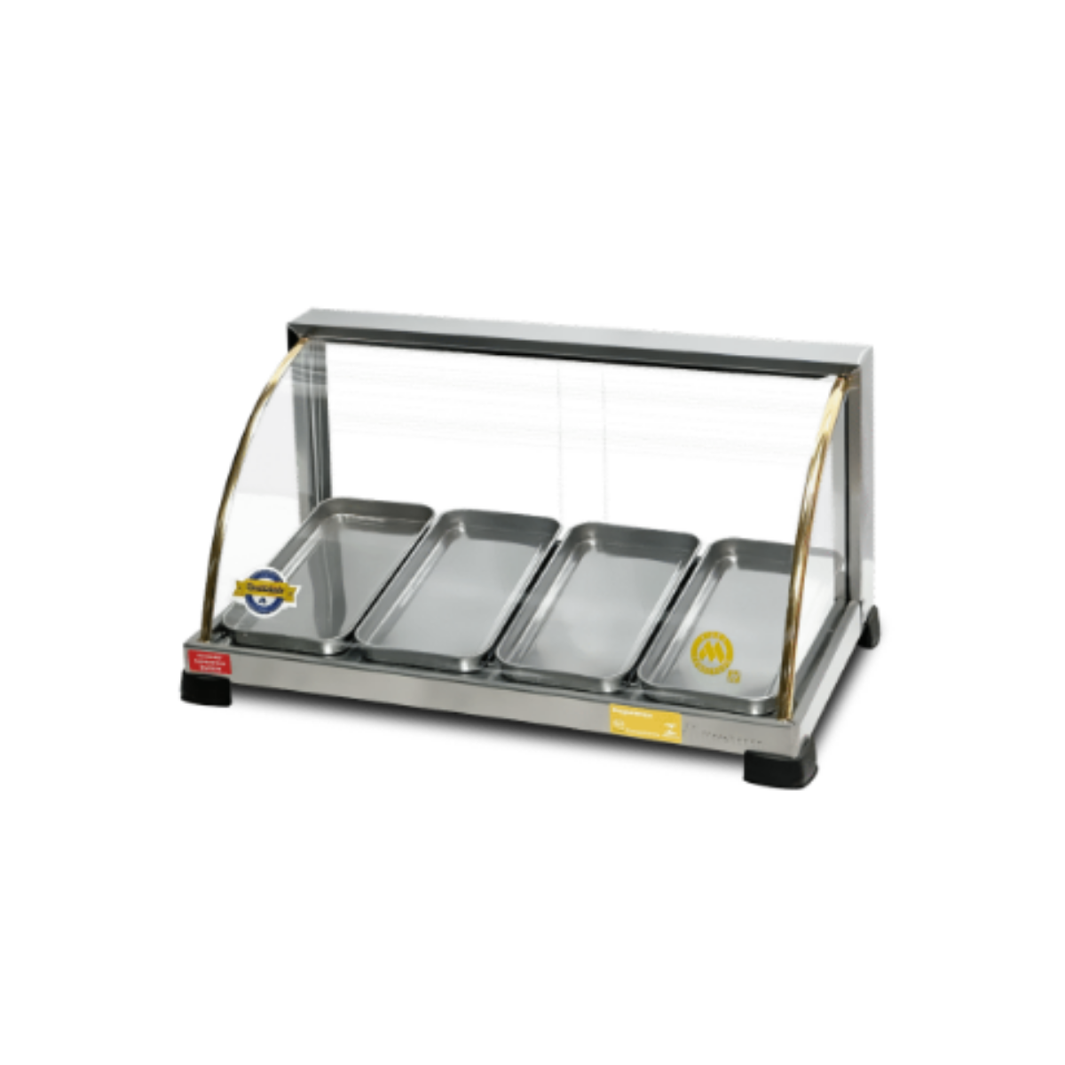 Estufa Ouro Marchesoni é uma vitrine aquecida projetada para manter alimentos quentes e suculentos, com controle de umidade e temperatura, ideal para expor e conservar produtos em padarias, cafeterias, lanchonetes, restaurantes e serviços de alimentação em geral possui bandejas removíveis em aço inox com altura aproximada de 3?cm, vidros temperados, acabamento atraente com frisos dourados, umidificador integrado, termostato regulável e baixa manutenção disponível em diversos modelos com diferentes capacidades de bandejas consulte-nos para opções de personalização de voltagem, bandejas extras, materiais ou dimensões especiais.